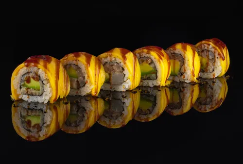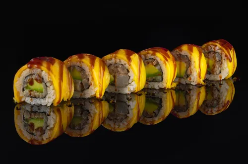 Краб, манго, авокадо, спайси-соус, унаги юдзу