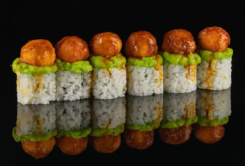 Хрустящая креветка, гуакамоле, крем-чиз, огурец, соус чили