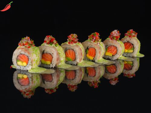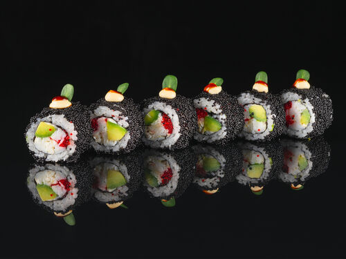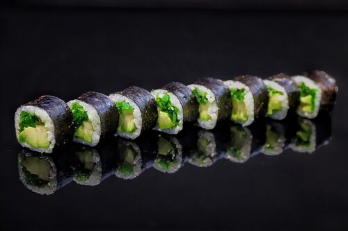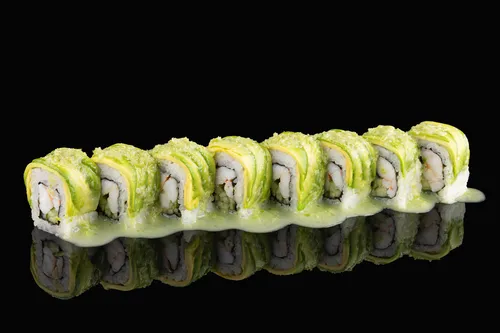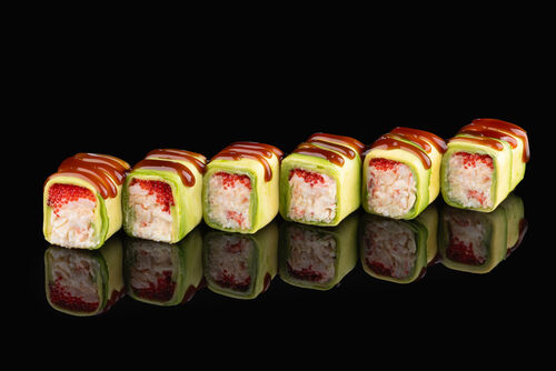 Сибас, авокадо, крем-чиз, огурец, японский соус ментайко