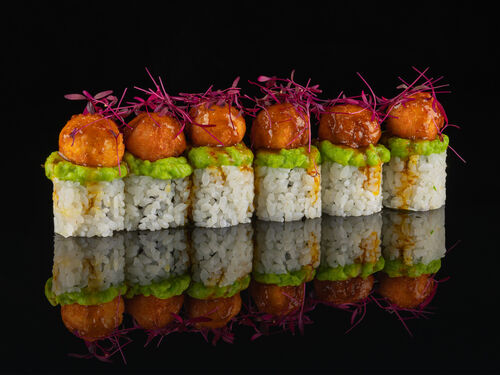 Хрустящая креветка, гуакамоле, крем-чиз, огурец, соус чили