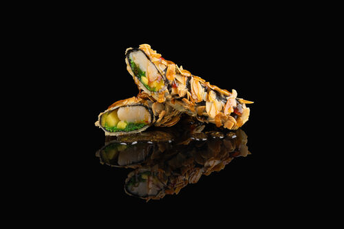 Гребешок, трюфельный соус, крем-чиз, авокадо, омлет (яйцо, соевый, соус, сахар)