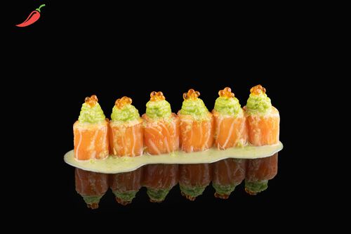 Сибас, лосось, авокадо, соус халапеньо, сальса